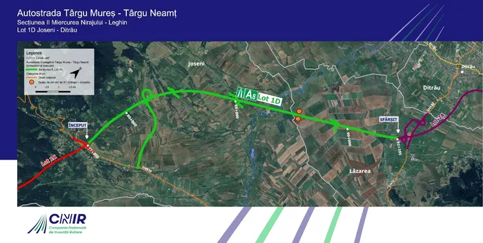 Lotul 1D. Joseni-Ditrău, din județul Harghita, face parte din secțiunea II Miercurea Nirajului-Leghin a Autostrăzii A8 și are un termen de realizare de 34 de luni, din care 10 luni pentru etapa de proiectare și 24 de luni pentru execuția lucrărilor.