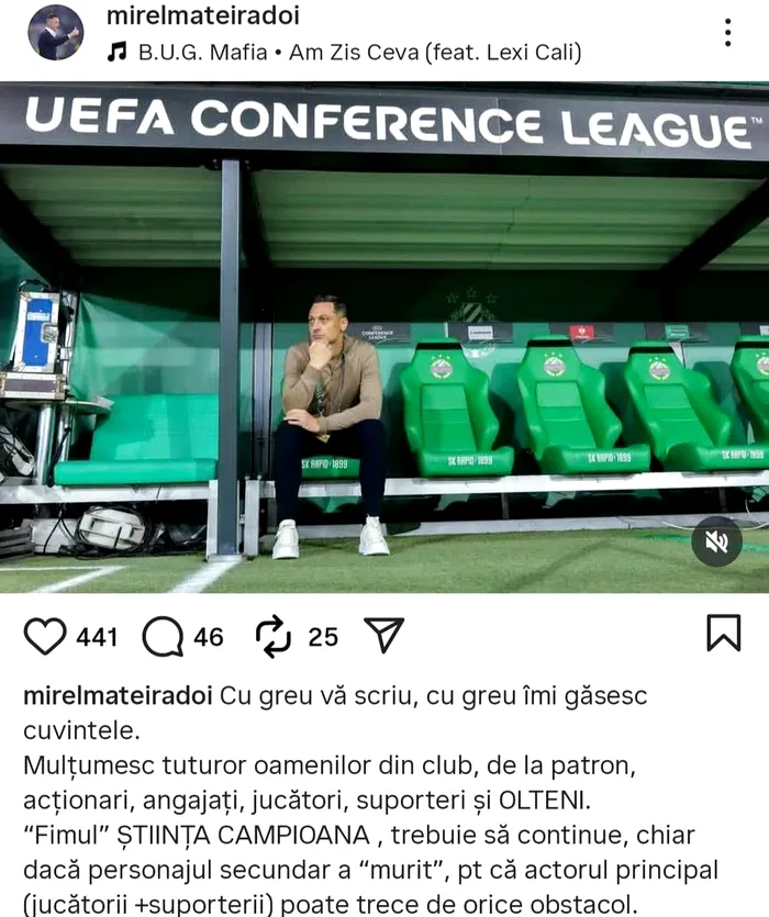 Fostul selecționer a ales și o melodie sugestivă care să însoțească postarea sa, piesa „Am zis ceva”, de la BUG Mafia. Iată două versuri din celebra melodie:
