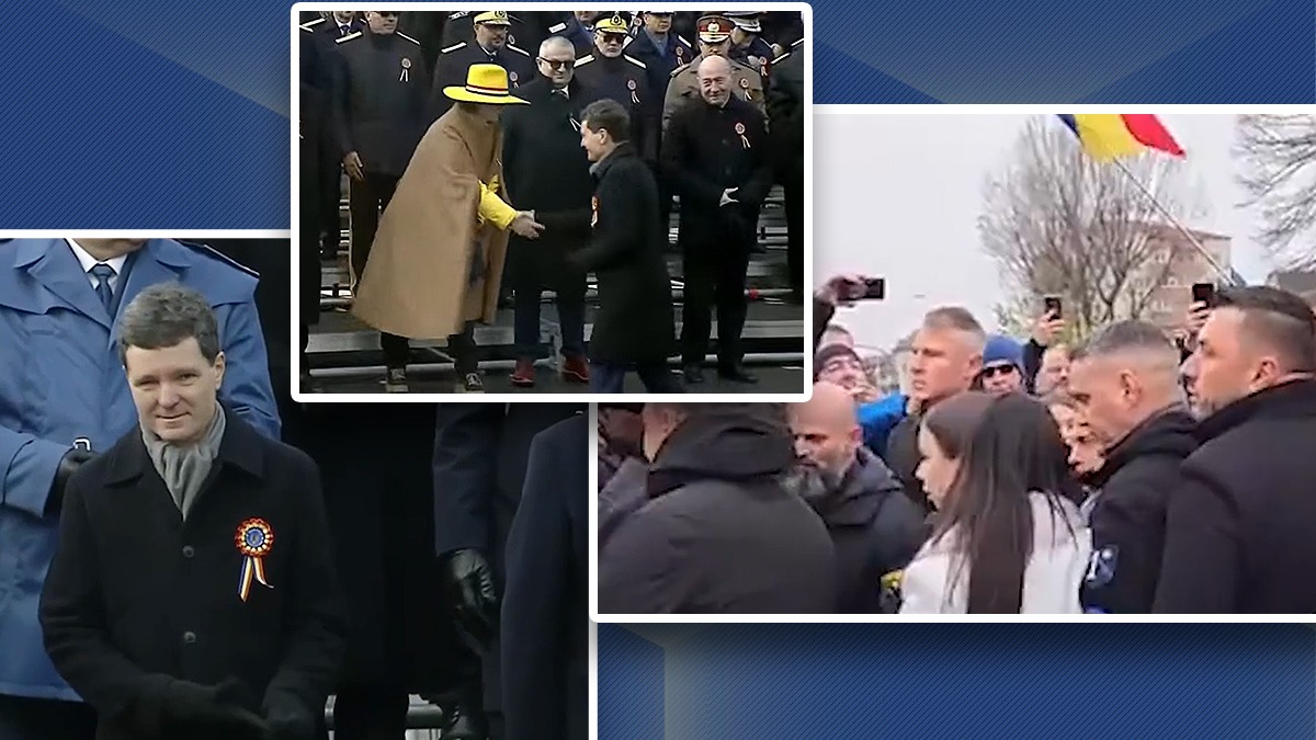 Momentele colorate ale Zilei Naționale: Îmbrânceli cu jandarmii la Alba Iulia / Suveraniștii, dezbinați: „Marș la ruși!”/ Pălăria galbenă-lămâie care a distras atenția de la paradă / Nicușor Dan, din nou, încurcat de protocol