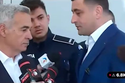 Unul dintre polițiștii care asigura paza la secția de votare din Mogoșoaia-Ilfov, acolo unde a votat liderul AUR-George Simion, împreună cu Călin Georgescu, a întrerupt abrupt declarațiile celor doi, de lângă urna de vot.