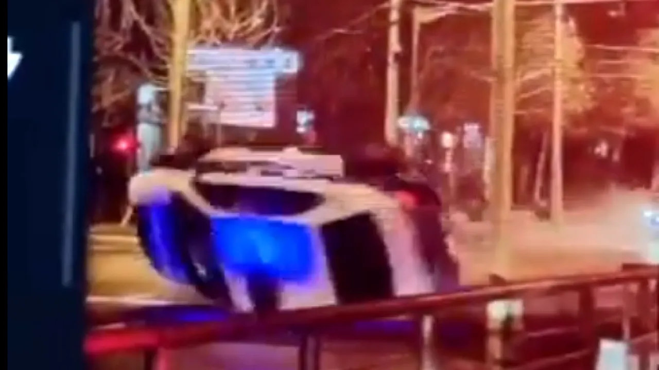 Potrivit Brigăzii Rutiere, autospeciala de poliție, care circula cu semnalele luminoase și acustice activate, a fost lovită lateral în intersecție și s-a răsturnat.