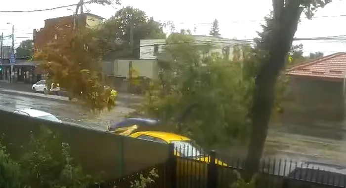 Prima pagină » Actualitate » Momentul în care un copac cade pe o mașină aflată în mișcare. Vremea de azi a făcut prăpăd în București
