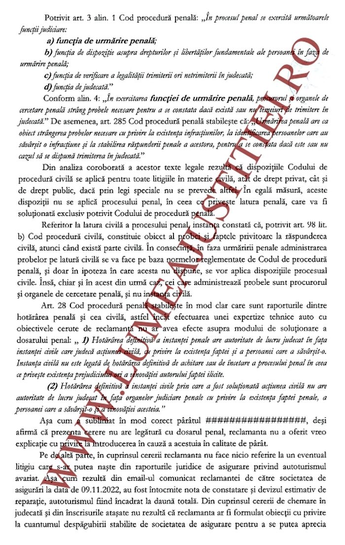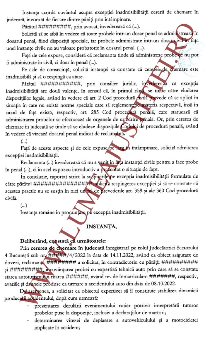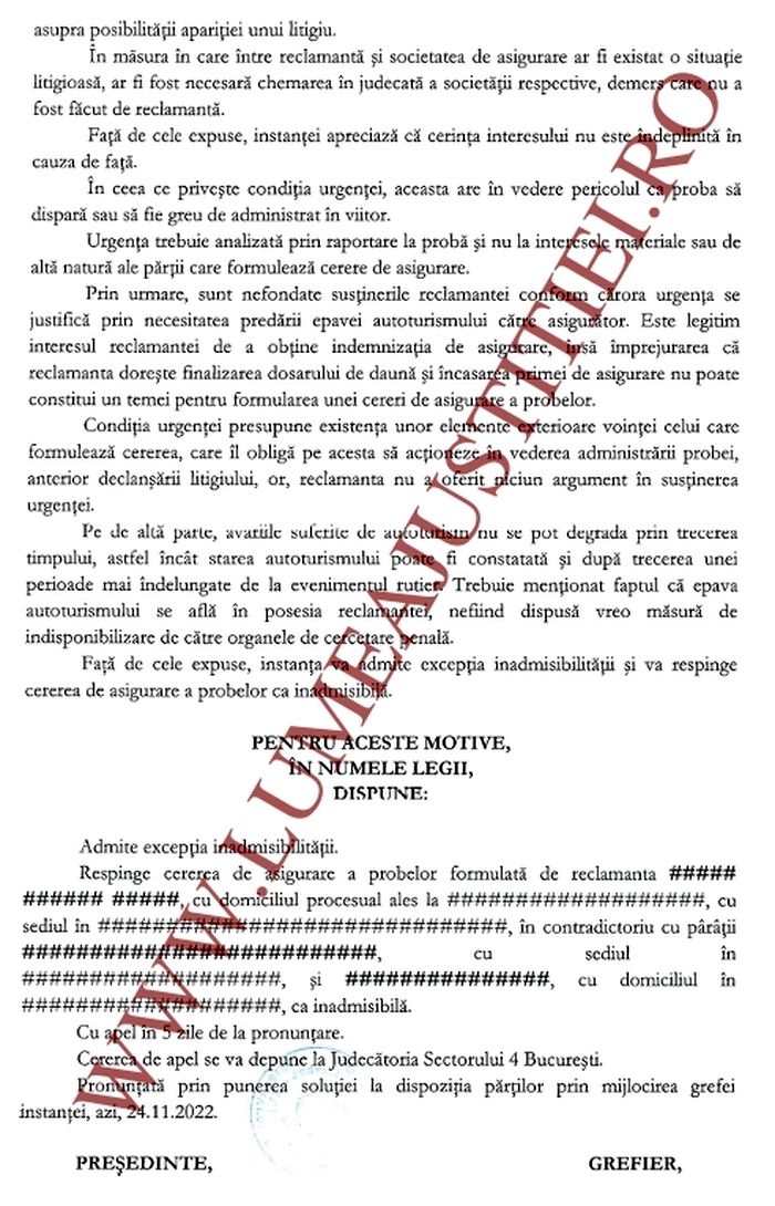 Extras din ”Încheierea” judecătoriei Sectorului 4 – 24 noiembrie 2022
