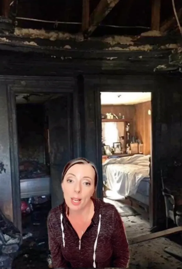 Ea a prezentat o fotografie care compară două dormitoare din aceeași casă după un incendiu: una dintre camere este intactă, în timp ce cealaltă a ars în totalitate.