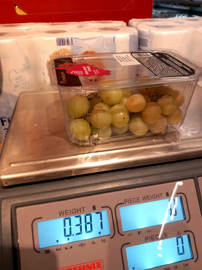 Așadar, câte grame are, de fapt, o caserolă cu 400g de struguri de la LIDL? Potrivit informațiilor comisarilor, caserolele de struguri aveau în jur de 390 de grame.