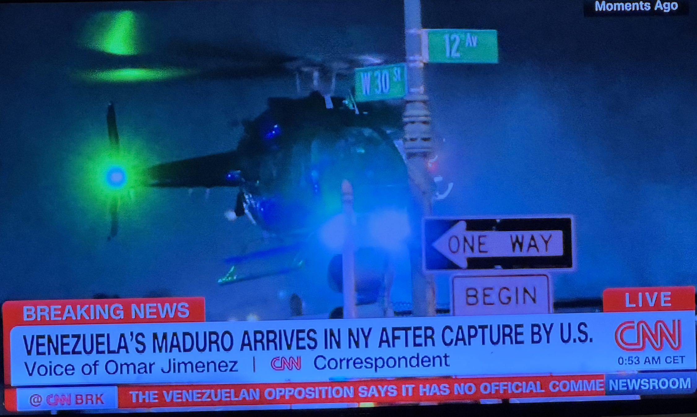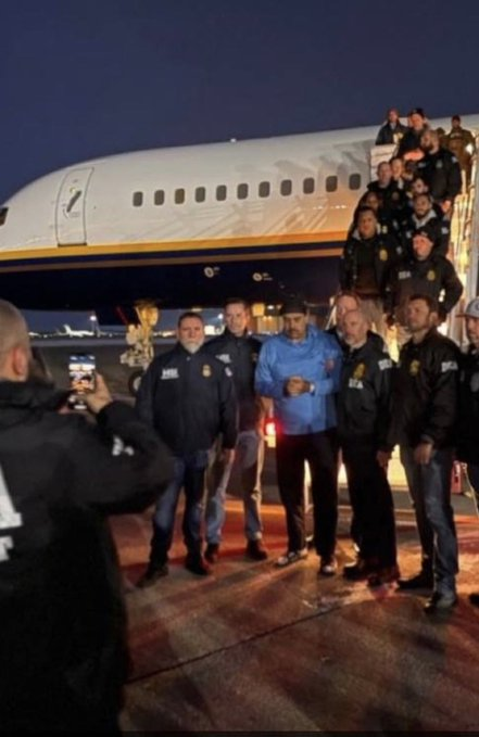 Maduro aterizează la Aeroportul Internațional Stewart din New York, înconjurat de agenți federali, unii dintre ei filmându-l cu telefoanele mobile. Potrivit unor surse, el va fi transportat cu elicopterul în oraș, unde va fi procesat și apoi transportat la închisoarea Metropolitan Detention Center (MDC).