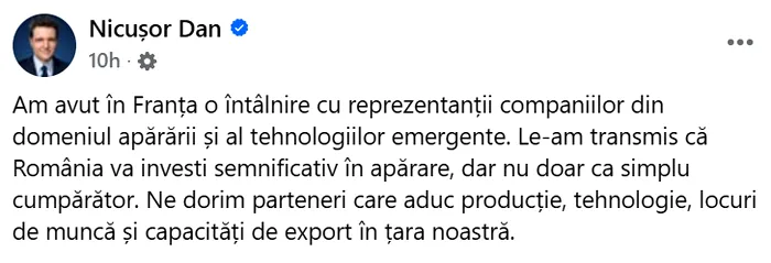 Thales confirmă, la rândul său, că își extinde prezența în România și consideră piața românească strategică pentru Europa de Est, mai ales în domeniile de apărare, inteligență artificială și securitate cibernetică.
