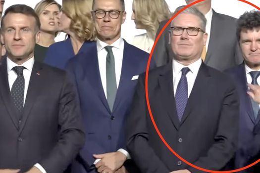 După ce operatorii de televiziune roagă liderii europeni să fie atenți la camere pentru a surprinde un moment bun în fotografie toată lumea, președintele Dan se strâmbă puțin, parcă dezamăgit, ulterior este atent și râde la dialogul lui Emmanuel Macron cu Keir Starmer și după aceea încearcă să coboare de pe podium.