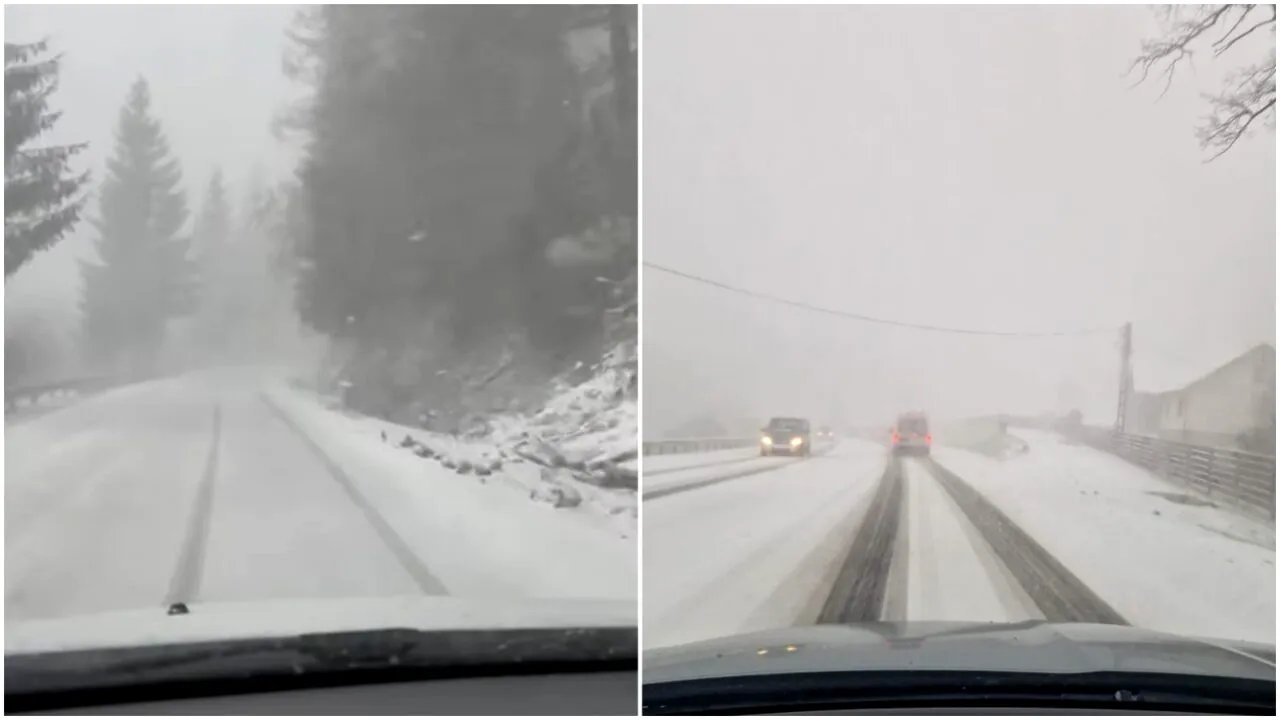 Fenomenele meteorologice specifice iernii au pus stăpânire pe multe zone din România, în această perioadă. Deși ne apropiem cu pași repezi către Sărbătorile Pascale, iarna nu oferă semne de retragere. Șoferii care circulă pe șosele, la această oră, pot întâmpina carosabilul umed și chiar înghețat. De exemplu, un conducător auto a surprins, înainte de prânz, astăzi, cum ninge abundent pe un drum din nordul țării. Imaginile au fost surprinse în satul Botuș, localitatea Fundu Moldovei, județul Suceava.