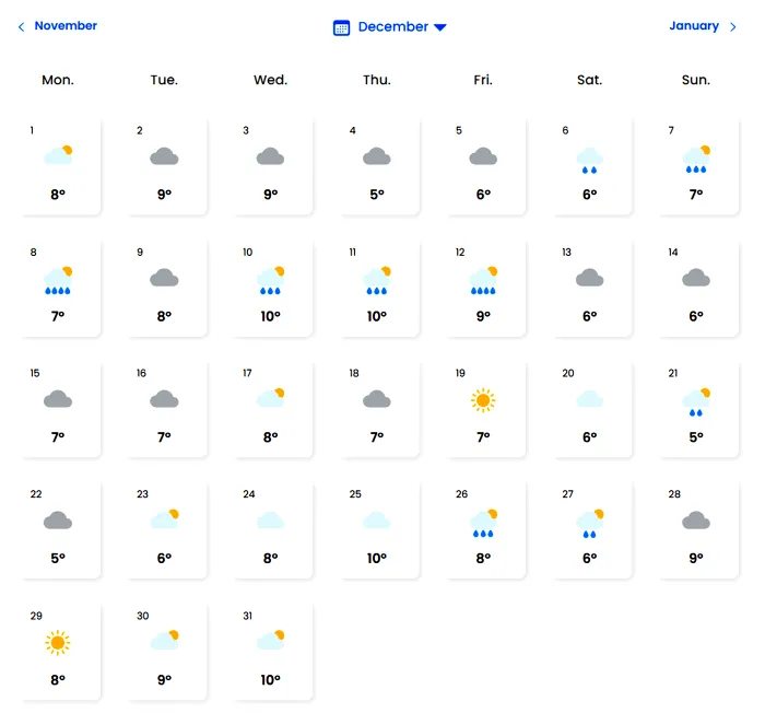 Prognoza pentru luna decembrie 2025 valabilă pentru orașul București