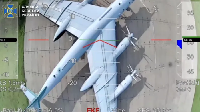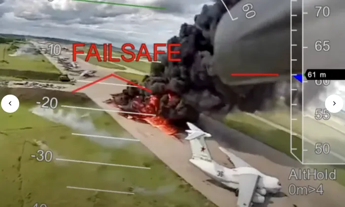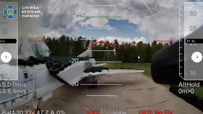 Serviciul de Securitate (SBU) al Ucrainei a publicat patru minute de filmări de la atacurile cu drone din cadrul Operațiunii „Pânza de păianjen” de duminică, 1 iunie 2025, care au avariat și distrus aeronave rusești la peste 4.000 de kilometri de Ucraina.