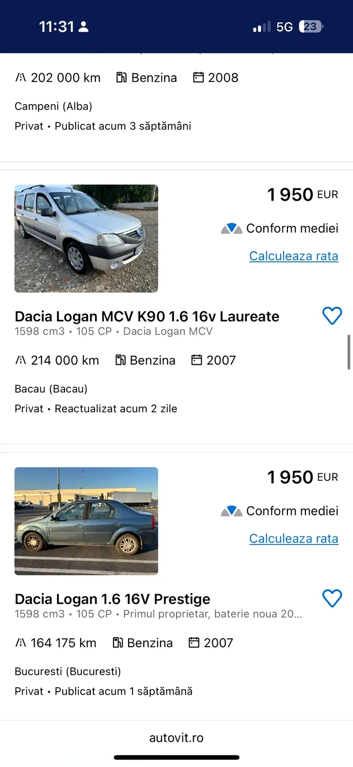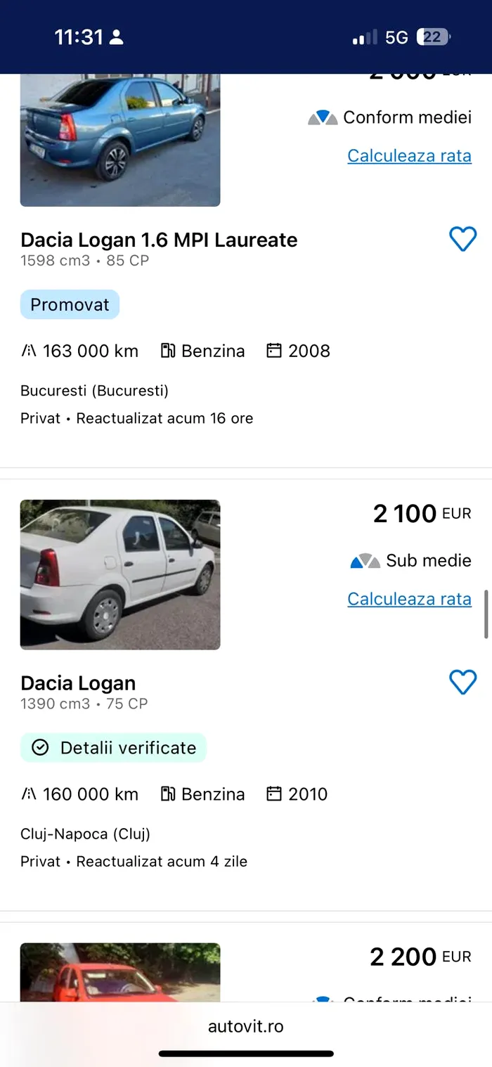 Prețurile autoturismelor Dacia Logan second-hand urcă spre prețul de achiziție a unui iPhone 17 Pro MAX în funcție anul de fabricație și de numărul de kilometri de la bord.