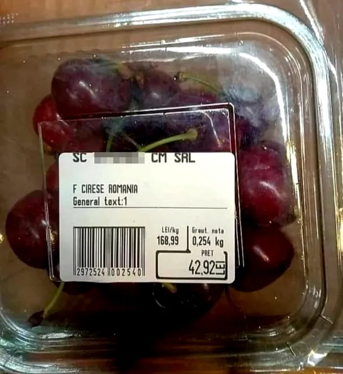 La un alt supermarket popular în rândul românilor, punga de 1 kg de cireșe costă 29 de lei.