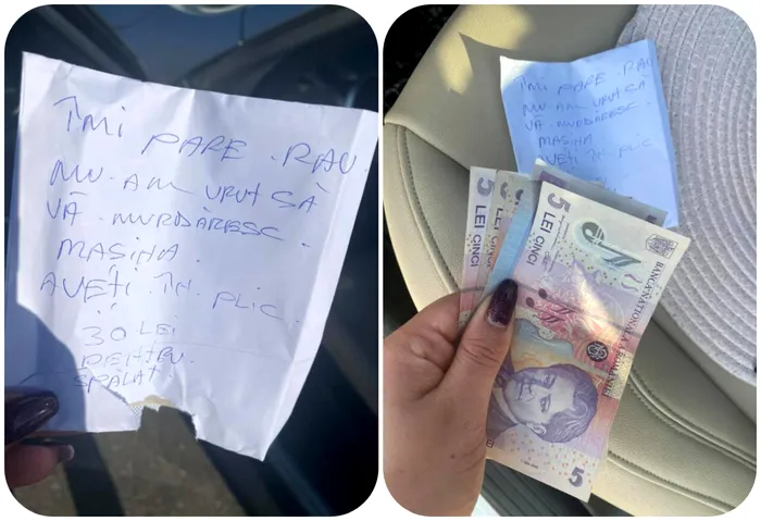 Conducătoarea auto ieșeancă a rămas surprinsă atunci când a citit mesajul de pe plic și a văzut conținutul său. O persoană i-a murdărit autoturismul și, având în vedere disconfortul creat, a decis să îi lase 30 de lei în plic pentru a o spăla. De altfel, a notat următorul mesaj, pe plic: „Îmi pare rău. Nu am vrut să vă murdăresc mașina. Aveți în plic 30 de lei pentru spălat”.