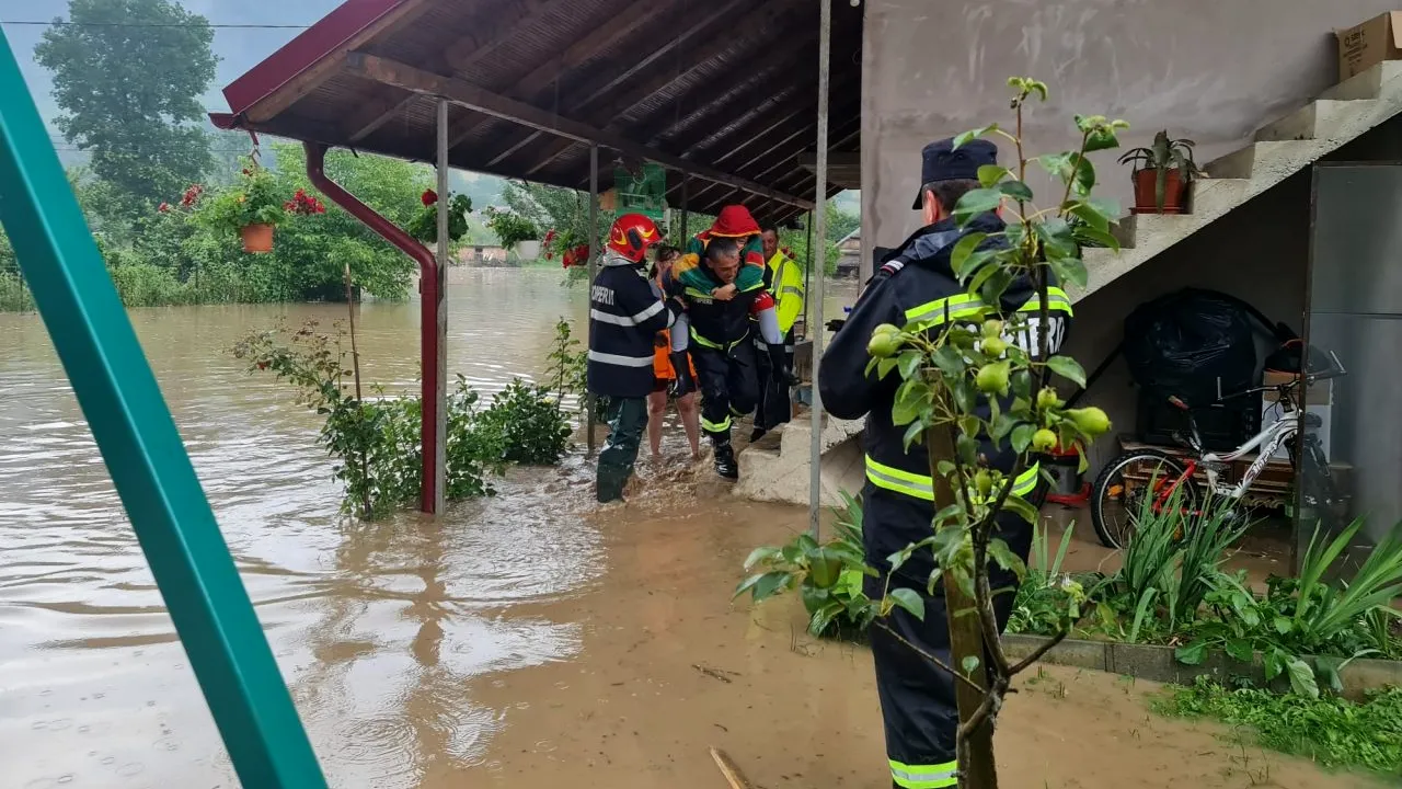 O femeie și doi copii, salvați din casă după inundațiile puternice din Alba. Apa ajunsese la un metru în locuința acestora | FOTO, VIDEO