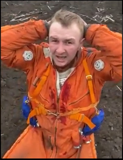 Imaginile difuzate de forțele ucrainene arată un pilot fotografiat pe un câmp, având mâinile în aer, chiar în momentul în care a fost capturat și o altă poza în timp ce acesta este interogat, conform publicației The Sun.