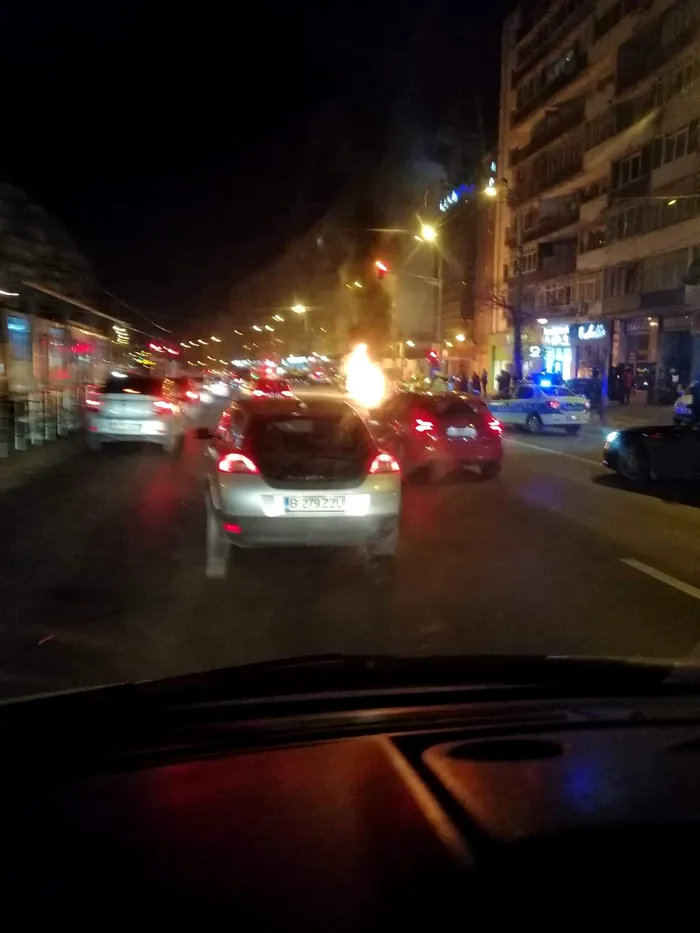 O mașină a luat foc și apoi a explodat, marți seară, pe unul dintre cele mai aglomerate bulevarde din Capitală.