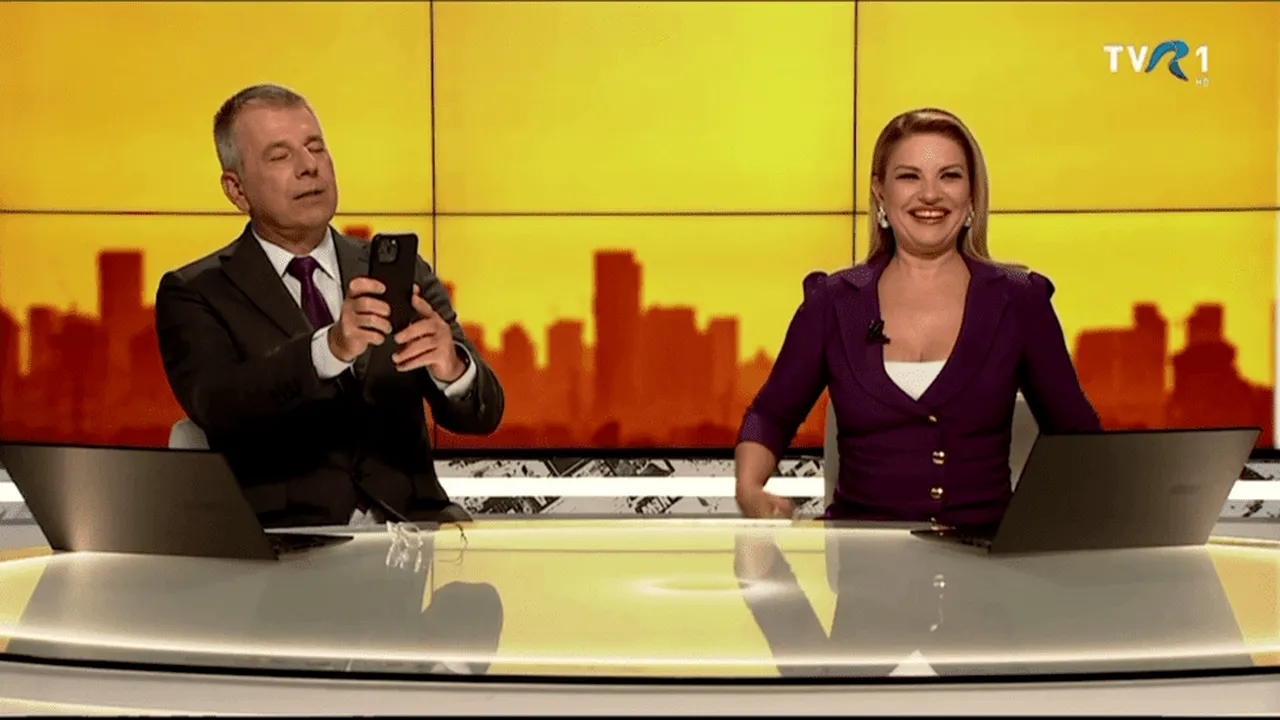 Colega de platou a acestuia, prezentatoarea Alina Stancu, râdea și își aranja. Au avut nevoie de câteva secunde ca cei doi să-și dea seama că sunt în direct: