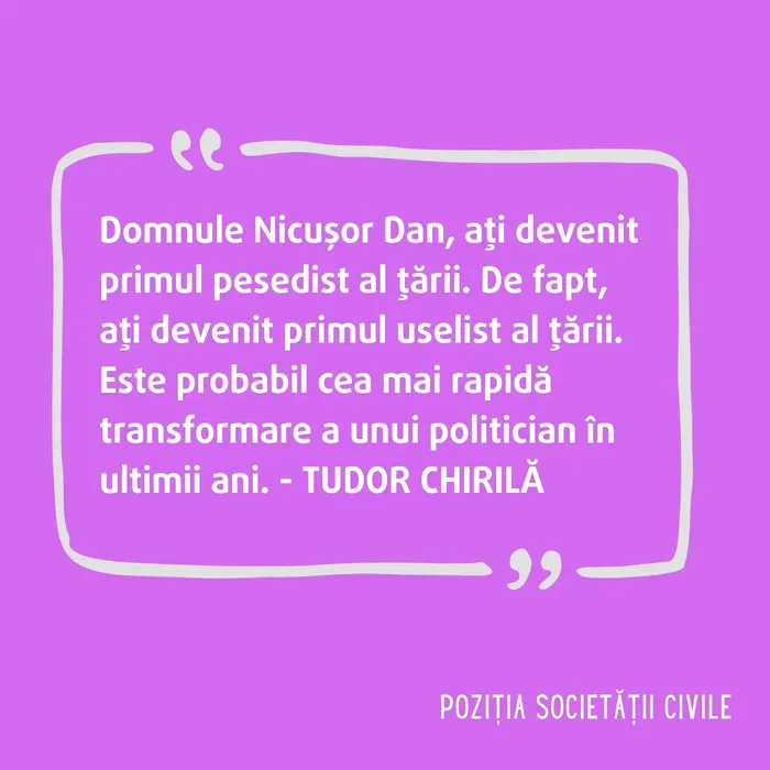 Prin deciziile și atitudinea dumneavoastră recentă, ați demonstrat nu doar o abatere de la promisiuni, 𝙘𝙞 𝙤 𝙙𝙚𝙘𝙪𝙥𝙡𝙖𝙧𝙚 𝙥𝙧𝙤𝙛𝙪𝙣𝙙𝙖̆ 𝙙𝙚 𝙡𝙖 𝙚𝙡𝙚𝙘𝙩𝙤𝙧𝙖𝙩𝙪𝙡 𝙘𝙖𝙧𝙚 𝙫-𝙖 𝙨𝙪𝙨𝙩̦𝙞𝙣𝙪𝙩. Ați ales să minimalizați această ruptură, în loc să o corectați.
