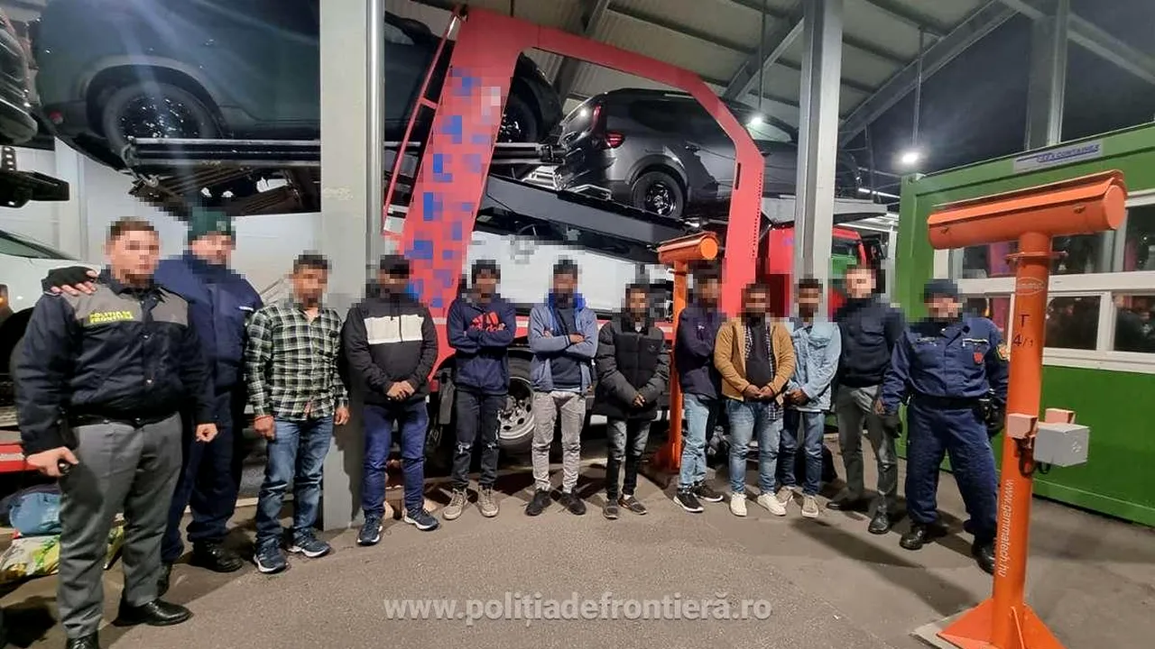 În urma efectuării controlului amănunţit al mijloacelor de transport, au fost descoperiţi, ascunşi în portbagajul autoturismelor transportate pe platformă, opt cetăţeni străini, potrivit unui comunicat al Poliției de Frontieră.
