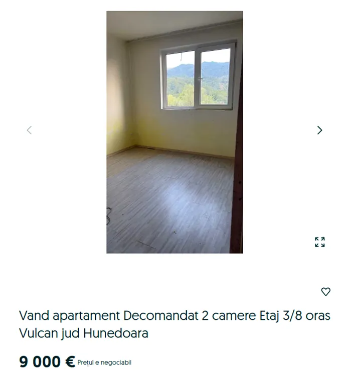 Totuși, apartamentul are nevoie de lucrări de renovare, aspect reflectat și de prețul cerut. Suma solicitată este de 9.000 de euro, iar proprietarul este dispus să negocieze și la acești bani.