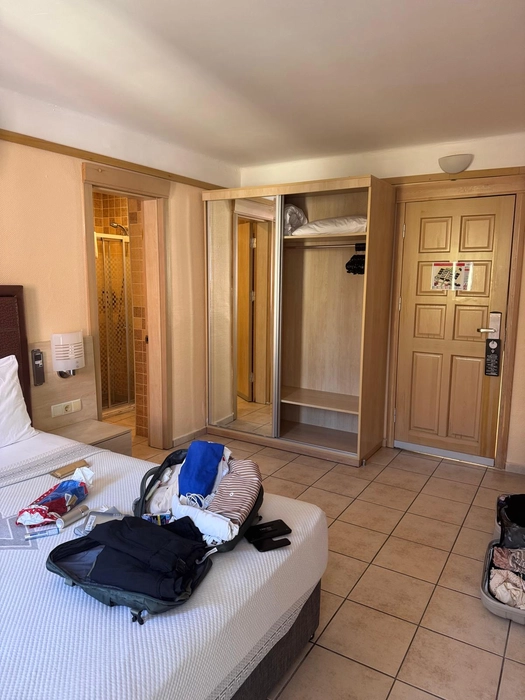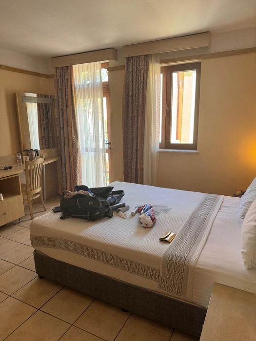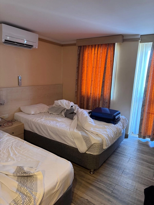 „Ne-au adus aici, la cazare. Prima cameră, am făcut și poze, eu nu am văzut așa ceva nici la bunica. Vă faceți cruce cum arată camera de 5 stele! Ușile, vai de capul lor. Glafurile de geamuri, ca la bunica. Geamul mic și îngust. Pereții, camera nu are dimensiunea corectă. Oricum, arată oribil! Ne-am dus la recepție și le-am spus că asta e bătaie de joc, am plătit pentru 5 stele. Au zis: «nu e nicio problemă, vă schimbăm camera». Am fost să vedem nu știu câte camere, aproape toate la fel. Dimensiunea camerelor era sub 3 stele, pentru că nu încăpeai efectiv. Noi am mai fost în Turcia, în Antalya, la Delphin, unde e, într-adevăr, de 5 stele. Eu le-am spus celor de la Karpaten că sunt nesimțiți, pentru că am fost la 5 stele și am văzut ce e acolo. Mi-a spus de la agenție: «voi ați fost la Delphin? Păi, acolo, la Delphin, e top!». I-am zis nu știu dacă e top sau nu, dar condițiile de 5 stele sunt peste tot, iar eu aici am plătit pentru 5 stele. Mi-ați spus 5 stele, eu mă așteptam să fie ca la Delphin.