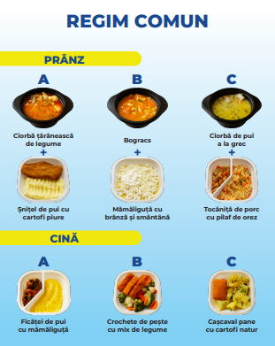 Mâncarea este livrată de o firmă de catering din Oradea. Sunt disponibile meniuri inclusiv pentru vegetarieni sau pentru pacienții cu intoleranță la gluten, scrie eBihoreanul.