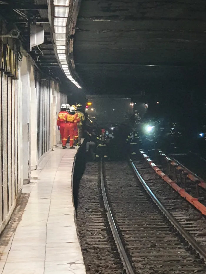 Metroul este pe tunel, la o distanță de aprox. 20-30 m de peron.