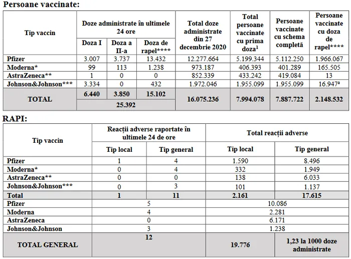 Din 27 decembrie 2020, au fost folosite 16.075.236 de doze de vaccin. 7.994.078 de români s-au vaccinat cu prima doză, 7.887.722 au schema completă, iar 2.148.532 au făcut doza booster.:format(webp):quality(80)/https%3A%2F%2Fwww.gandul.ro%2Fwp-content%2Fuploads%2F2022%2F01%2Ftabel-vaccinare-10-ianuarie-2022.jpg)