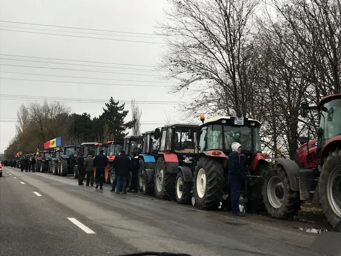 Câteva zeci de tractoare au format o coadă la intrarea în capitala Moldovei.