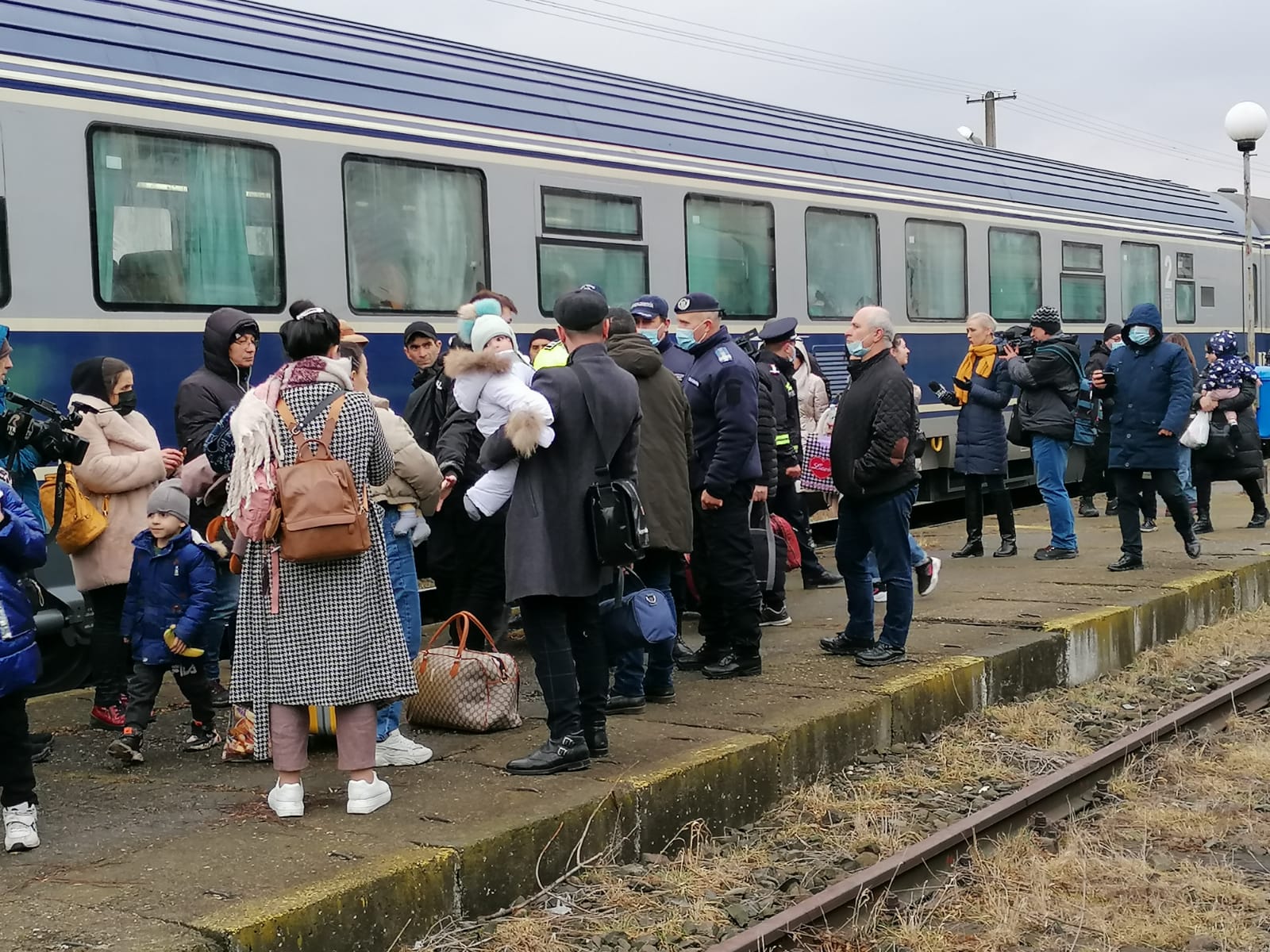 Un tren cu 1.100 de pasageri din Ucraina a intrat în România joi după-amiază. Toți pasagerii sunt de origine azeră și se află în tranzit către țara lor. Se vor opri la Gara Cristești-Iași, vor fi urcați într-o altă garnitură care îi va duce la București, urmând ca vineri să își continue deplasarea către casă. Printre pasageri se află și două femei însărcinate, fiind pregătite la Iași și echipaje medicale care să le preia în cazul în care au nevoie de asistență.