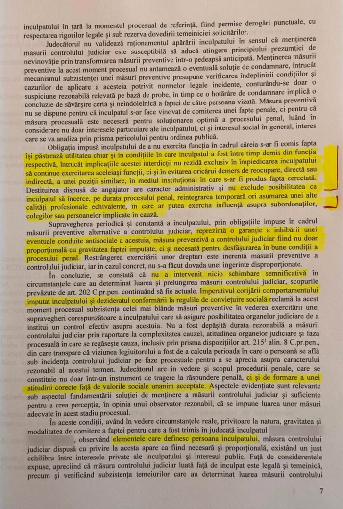 „Sentimentul de insecuritate care a fost creat în cadrul comunităţii din cauza conduitei inculpatului” este un alt argument pe care instanţa îl aduce în sprijinul deciziei de prelungire a controlului judiciar.