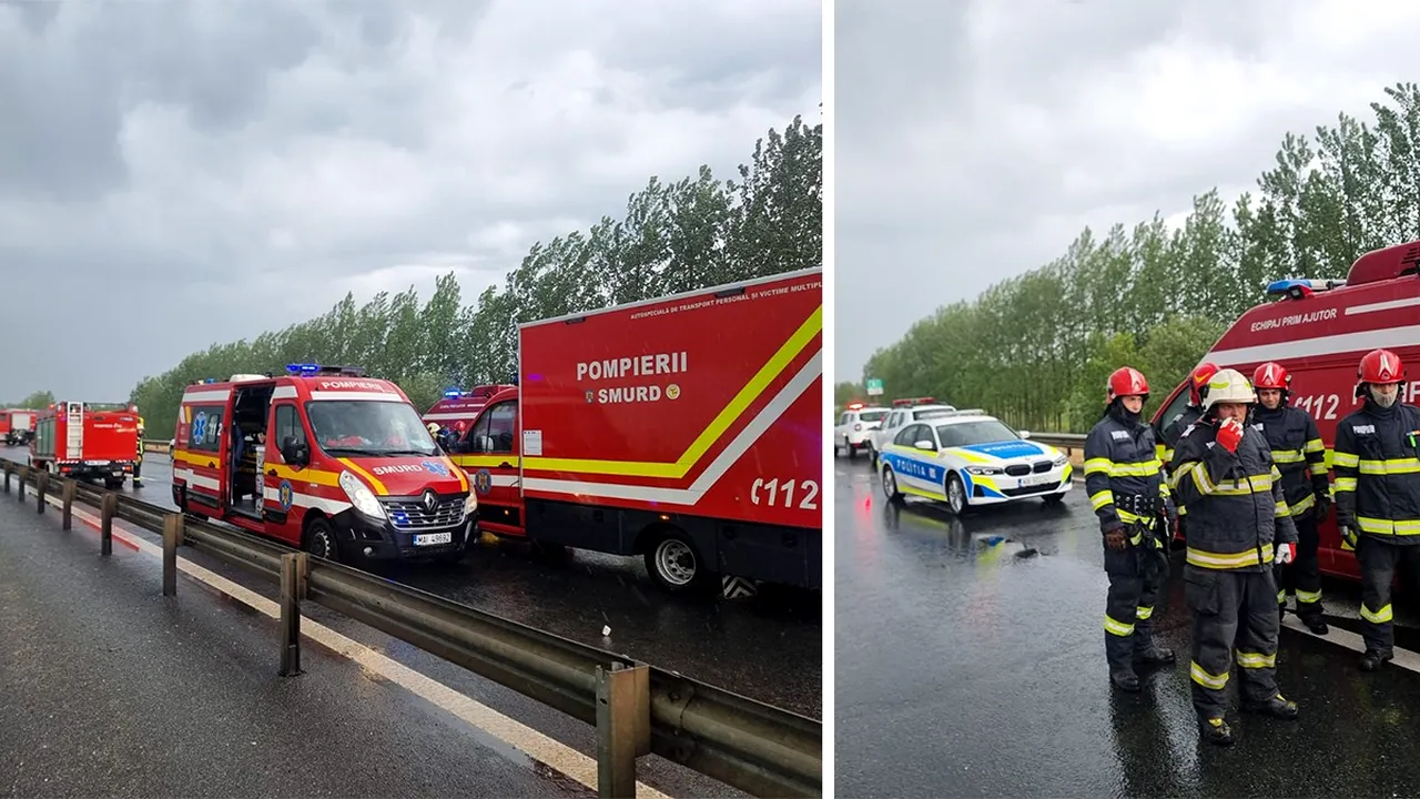 Accidentul rutier s-a produs pe autostrada A1, pe sensul de circulaţie Nădlac- Arad. Un oficial al ISU Arad a declarat că ar fi fost implicate 11 persoane.