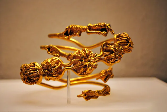 Dintre toate, cea mai spectaculoasă piese este o diademă princiară din aur masiv, cântărind nu mai puțin de 765 de grame.