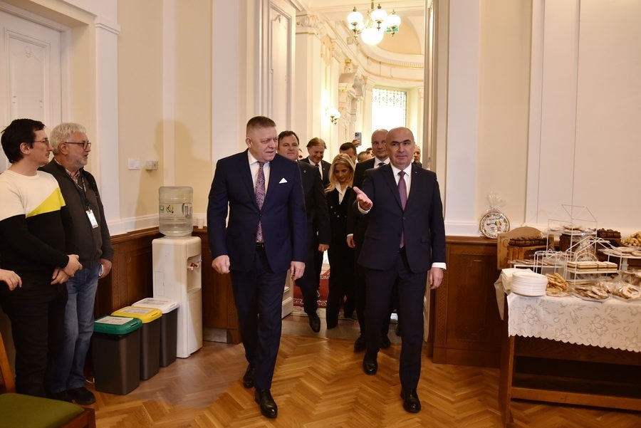 Peste o sută de reprezentanți ai comunității slovace din Bihor, dar și din Banat, Sălaj și Satu Mare, alături de aleși locali, profesori și fețe bisericești, l-au așteptat în Sala Traian Moșoiu a Primăriei. Oaspeții au fost primiți cu aplauze, iar după intonarea imnurilor naționale, Fico a admirat vizibil impresionat decorul sălii și tablourile istorice expuse, menționează sursa citată.