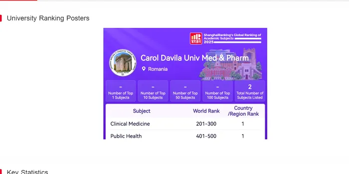 Universitatea Carol Davila , două apariții în clasamentul Shanghai