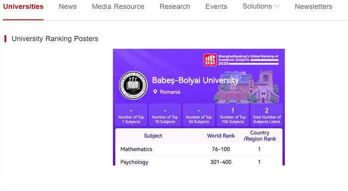 Universitatea Babeș-Bolyai din Cluj-Napoca , două apariții în clasamentul Shanghai