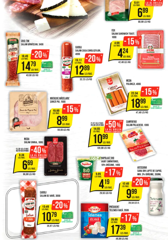 Ei bine, este vorba despre salamul Palaciego, de la Campofrio, varianta de 100 g, dar reducerea este valabilă la al doilea produs cumpărat.