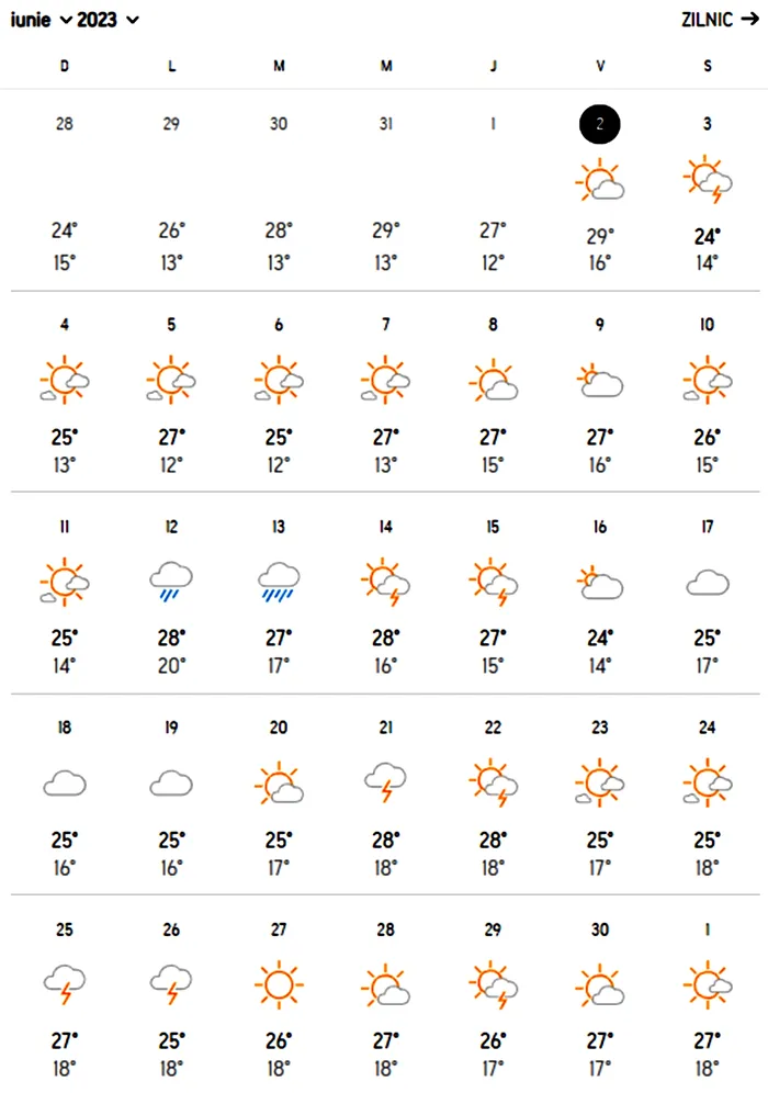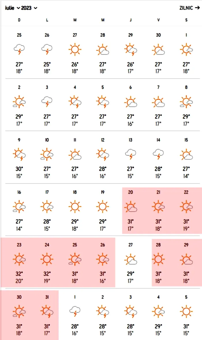 Meteorologii de la Accuweather au actualizat prognoza pentru primele două luni ale verii, astfel că în București, prima zi în care temperatura va ajunge la 30 de grade este 20 iulie.