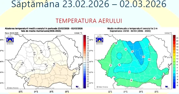 Administrația Națională de Meteorologie a publicat marți estimările meteorologice pentru intervalul 9 februarie – 9 martie 2026.