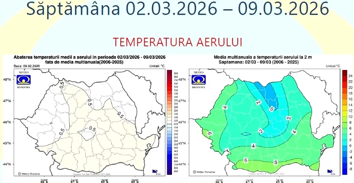Pentru ultima săptămână analizată, 2-9 martie 2026, mediile valorilor termice sunt estimate a fi apropiate de cele specifice perioadei la nivel național. De asemenea, cantitățile de precipitații vor fi, în general, normale pe întreg teritoriul României.