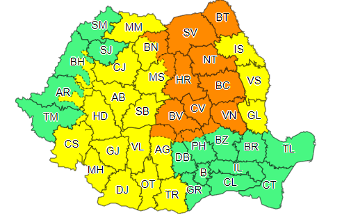 Cod portocaliu și cod galben de ploi torențiale și furtuni în peste jumătate de țară
