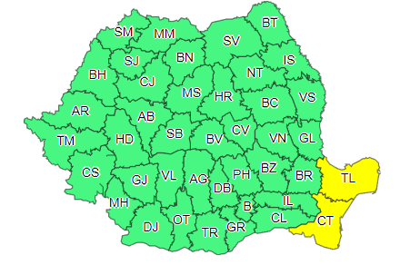 De asemenea, în perioada 31 iulie, ora 21:00 – 01 august, ora 03:0o, va fi instabilitate atmosferică în Dobrogea ce se va manifesta prin perioade cu averse torențiale, descărcări electrice și intensificări de scurtă durată ale vântului. În intervale scurte de timp sau prin acumulare cantitățile de apă vor fi de 20…25 l/mp și pe alocuri de peste 30…40 l/mp.