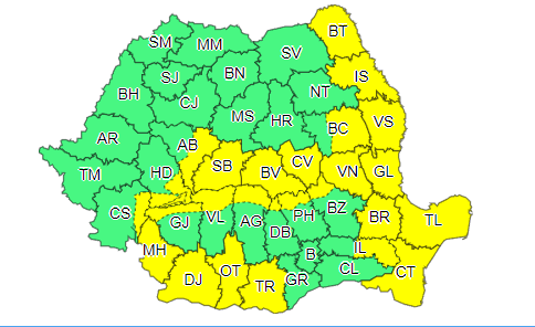 În Carpații Meridionali și de Curbură, în special la altitudini de peste 1700 m, vor fi rafale în general de 80…110 km/h.