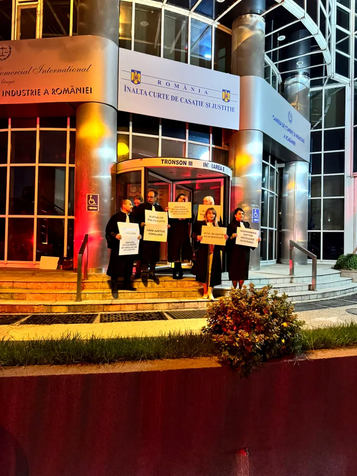 Pe treptele Înaltei Curți de Casație și Justiție sunt și 8 avocați, între care și Daniel Caraman sau George Moloman. Ei au coli A4 cu mesaje de susținere pentru Curtea Supremă: ”Alături de Înalta Curte”, ”Actul de justiție nu se negociază”, ”Fără justiție populară”.