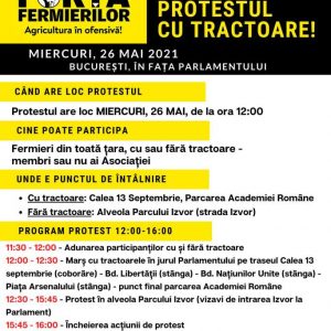 Din ce afirmă, membrii Asociaţiei „Forţa Fermierilor” îşi propun ca prin acest protest cu tractoarele în Capitală „să oprească bătaia de joc la care este supus sectorul agroalimentar: subvenţii de la bugetul naţional înjumătăţite faţă de 2020, întârzierea demarării noilor sesiuni de depunere a proiectelor europene, blocajul financiar din sectorul creşterii bovinelor, colapsul sectorului de creştere a porcinelor, problemele noi din sectorul creşterii păsărilor, renunţarea la Programul «Tomata», excluderea investiţiilor în irigaţii şi a celor opt depozite regionale din PNRR, riscul de insolvenţă pentru fermierii afectaţi de secetă în 2020 din cauza neacordării despăgubirilor, lipsa unei consultări reale cu fermierii pentru implementarea Politicii Agricole Comune 2021-2027”.