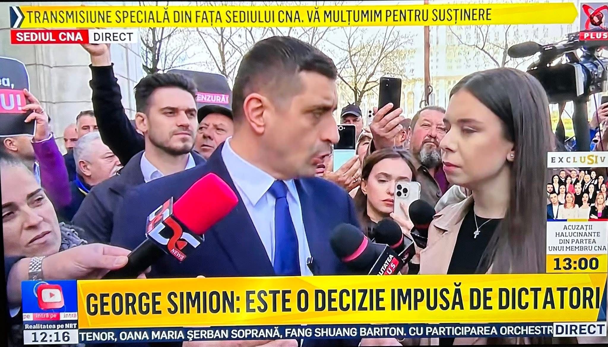 Aproximativ 200 de persoane s-au adunat miercuri dimineață în fața sediului CNA pentru a contesta retragerea licenței postului Realitatea Plus. La protest s-a alăturat și George Simion și mai mulți parlamentari.