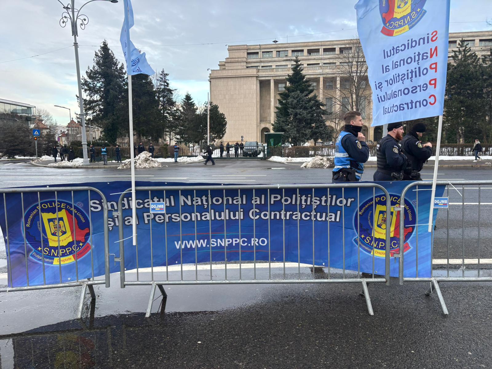 Sindicatul Naţional al Poliţiştilor şi al Personalului Contractual din Ministerul Afacerilor Interne protestează astăzi în Piaţa Victoriei. Sindicaliștii contestă modificarea Legii pensiilor militare.