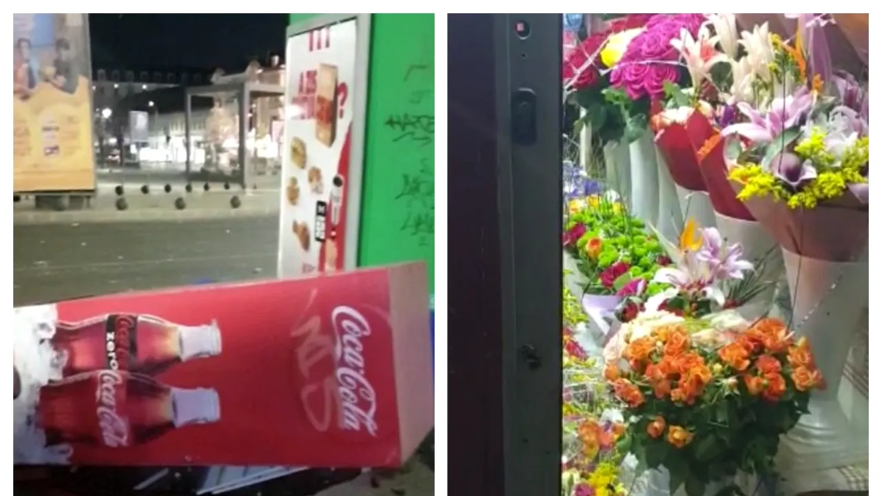 Sunt distrugeri mari și pe partea cu tramvaiul 32, în urma protestelor anti-restricții de luni seară.