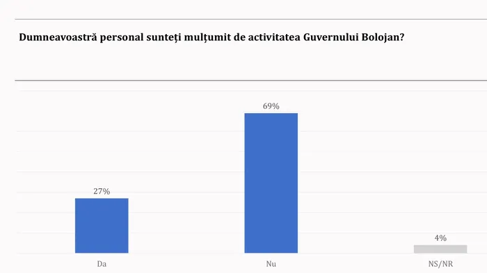 Dacă ne referim la activitatea Guvernului Ilie Bolojan, 69% dintre cei chestionați spun că nu sunt mulțumiți de realizările Executivului.